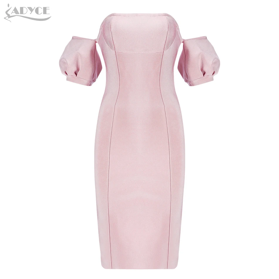 BEST QUALITY Adyce 2020 New Summer Pink Bandage Dress Women Vestidos Slash Neck Off Shoulder Midi Bodycon Club C